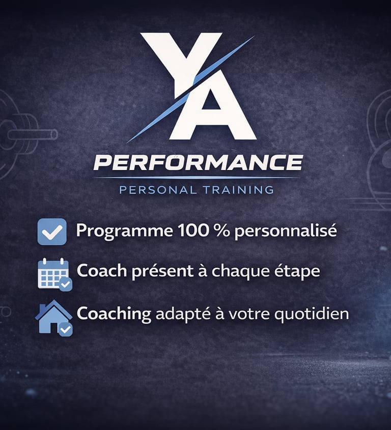 YA Performance accompagne celles et ceux qui souhaitent progresser durablement grâce à un coaching structuré, personnalisé et humain, en salle ou à domicile. Ici, pas de méthode miracle. Juste du travail intelligent, du suivi et des résultats.